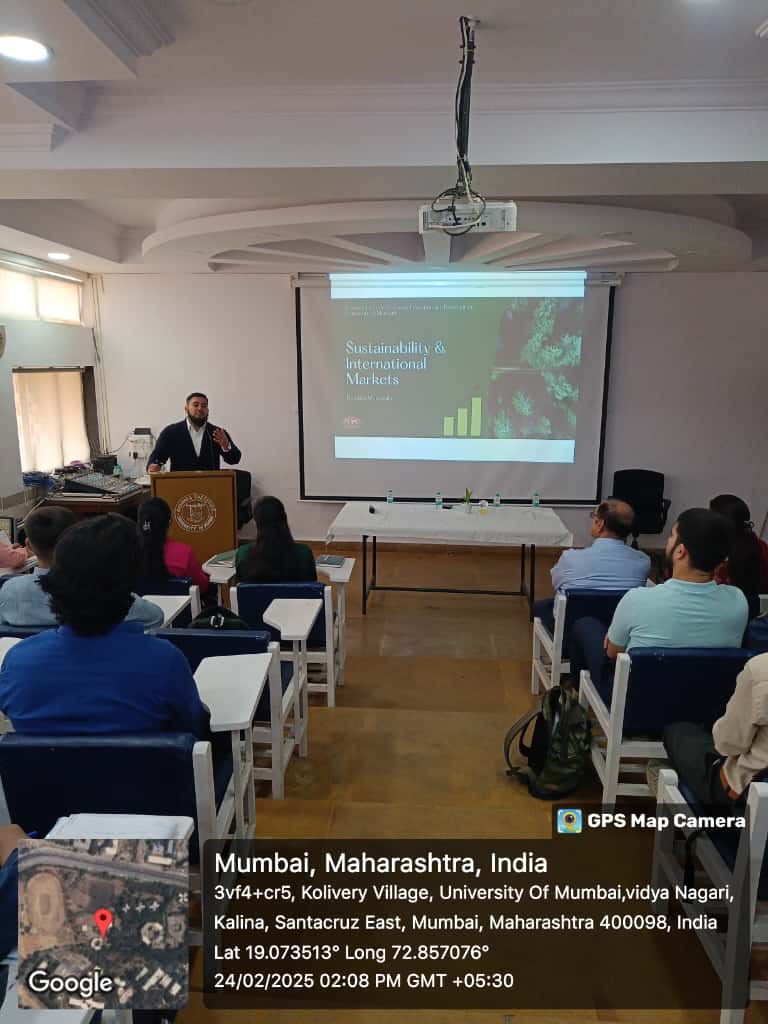 Guest Speaker session at University of Mumbai on Sustainability and International Markets.